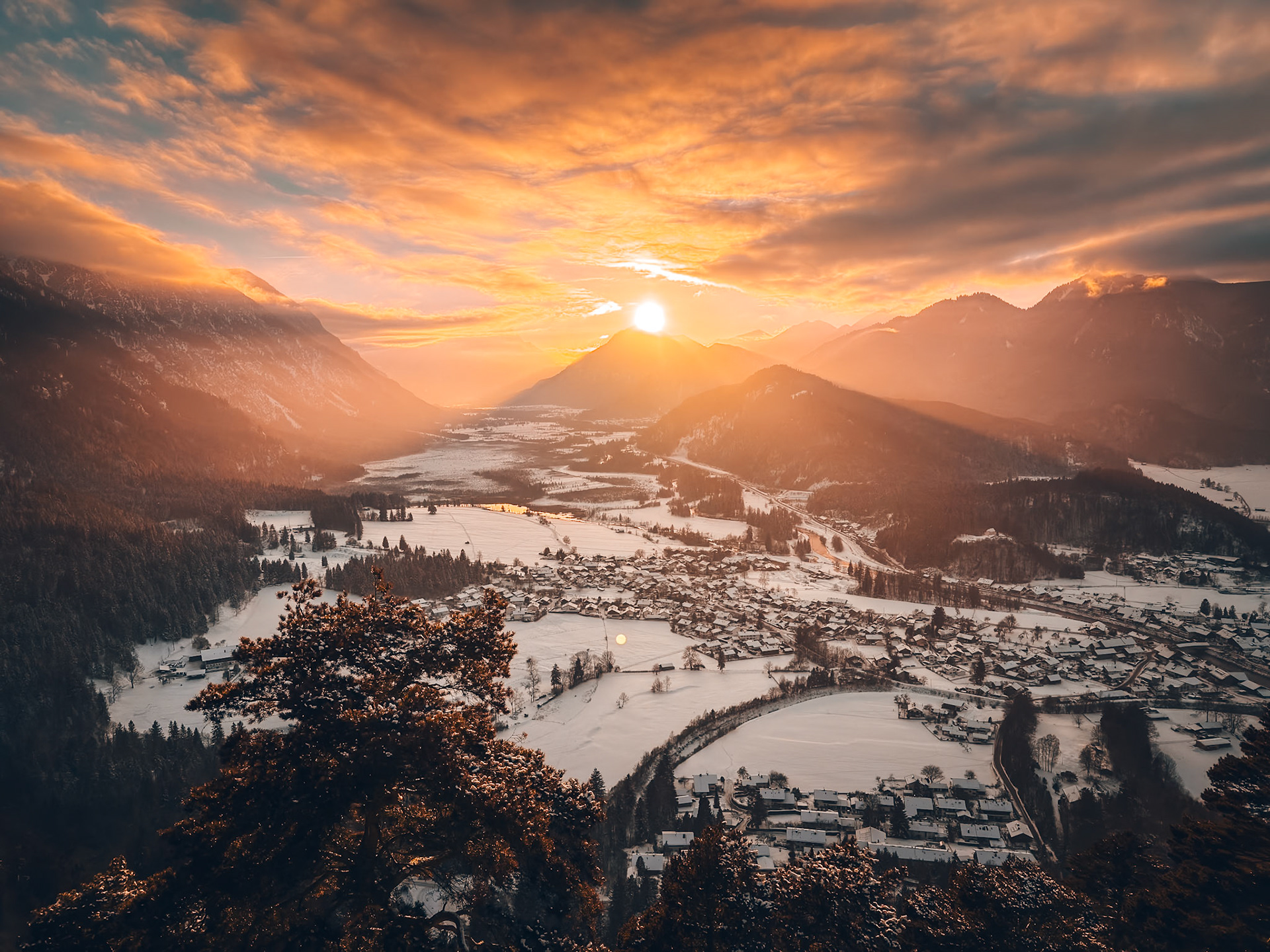 Eschenlohe during sunset